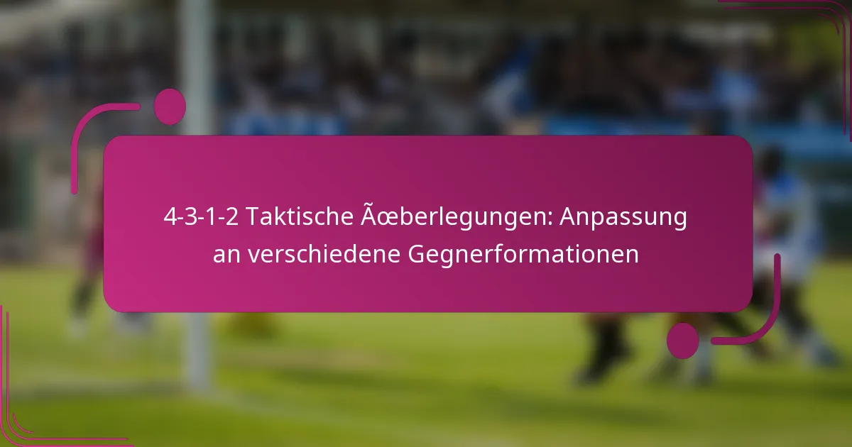 Die 4-3-1-2-Formation ist ein vielseitiges taktisches Setup im Fußball, das durch ein solides Mittelfeld und eine doppelte Angriffsreihe gekennzeichnet ist. Durch die Anpassung an verschiedene gegnerische Formationen können Teams ihre defensiven und offensiven Strategien verbessern, Schwächen ausnutzen und gleichzeitig ihre eigenen Stärken verstärken. Diese Anpassungsfähigkeit ist entscheidend, um die Kontrolle zu behalten und gegen unterschiedliche Spielstile Torchancen zu schaffen.